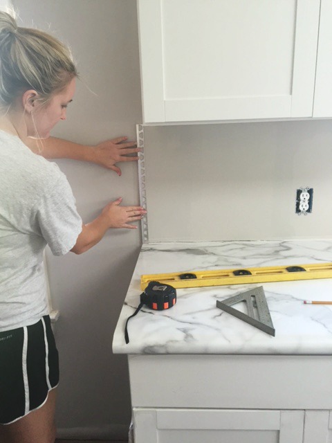 Tape the tile and the counter top leaving a gap for the caulk. Be sure your gap is the same from one end to the other. You don't want crooked lines :)